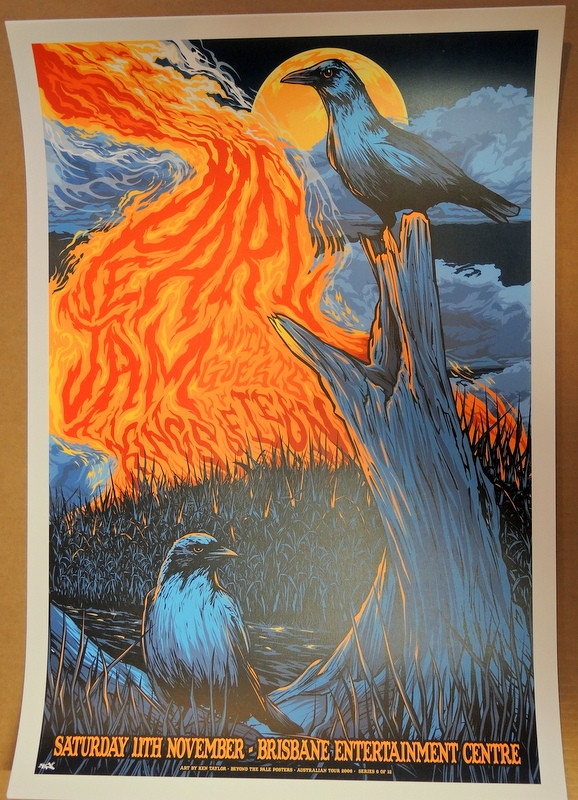 A GREAT PEARL JAM IMAGE DONE BY KEN TAYLOR. THIS IS FOR THEIR NOVEMBER 11, 2006 SHOW AT THE BRISBANE ENTERTAINMENT CENTRE IN BRISBANE, AUSTRALIA. THIS POSTER IS MINT AND MEASURE 19" X 27.5". IT IS NOT SIGNED OR NUMBERED.