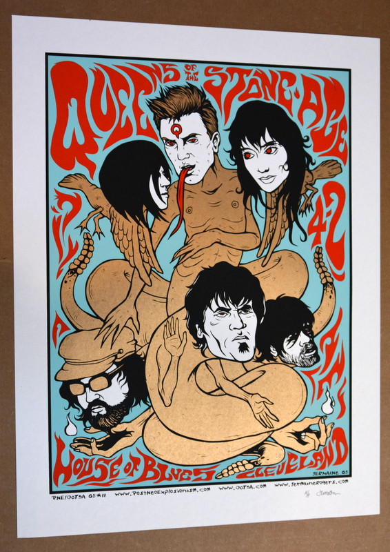 A GREAT IMAGE BY JERMAINE ROGERS FOR QOTSA. THIS IS AN ARTIST PROOF, SIGNED AND A/Ped BY JERMAINE. THIS IS FOR THE APRIL 2, 2005 SHOW AT THE HOUSE OF BLUES IN CLEVELAND. PRINTED ON WHITE PAPER. IT IS MINT AND MEASURES ABOUT 21" X 28". PRIORITY MAIL USA, FIRST CLASS INTERNATIONAL.